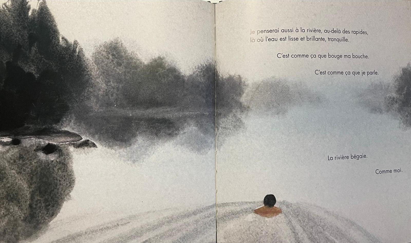 « Je suis allé à l’école et j’ai parlé aux autres de mon endroit préféré. Je leur ai parlé de la rivière. Et j’ai parlé comme une rivière. »